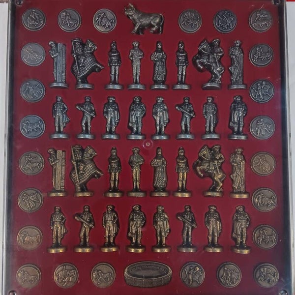 PRECIOSO JUEGO DE AJEDREZ FIGURAS DE METAL MAS DAMAS SERIE TAUROMAQUIA TOROS TOREROS